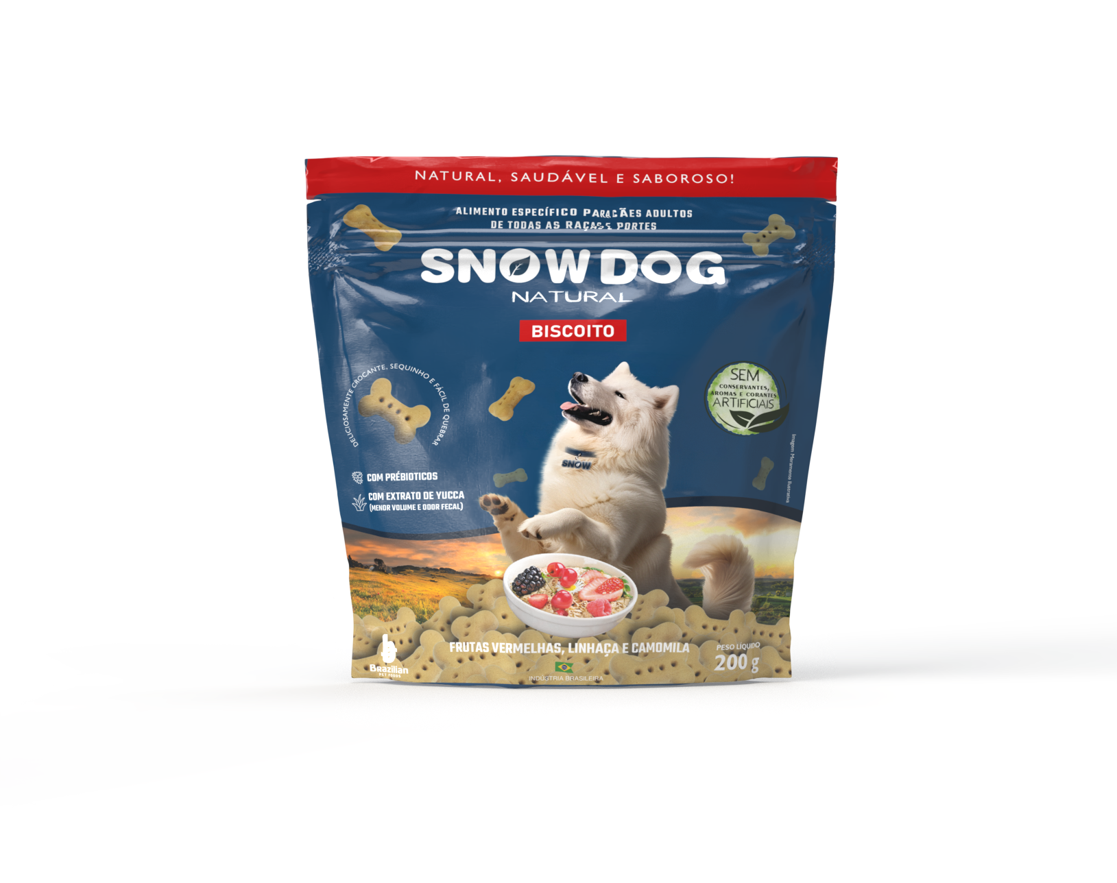 Um petisco crocante e equilibrado, com o sabor irresistível de frutas vermelhas e o cuidado de uma receita natural. Enriquecido com prebióticos e extrato de yucca, ajuda a manter o intestino saudável e reduz o odor das fezes. Feito sem aromas ou corantes artificiais, é o mimo perfeito para quem quer oferecer ao pet um agrado leve, nutritivo e cheio de sabor.                                          Biscoito sabor frutas vermelhas. Com extrato de yucca (menor volume e odor fecal). Com prebióticos. Crocante e sequinho. Sem aromas e corantes artificiais.